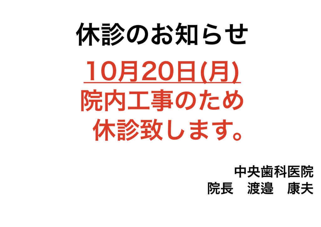 10月20日、院内工事のため休診とさせていただきます。